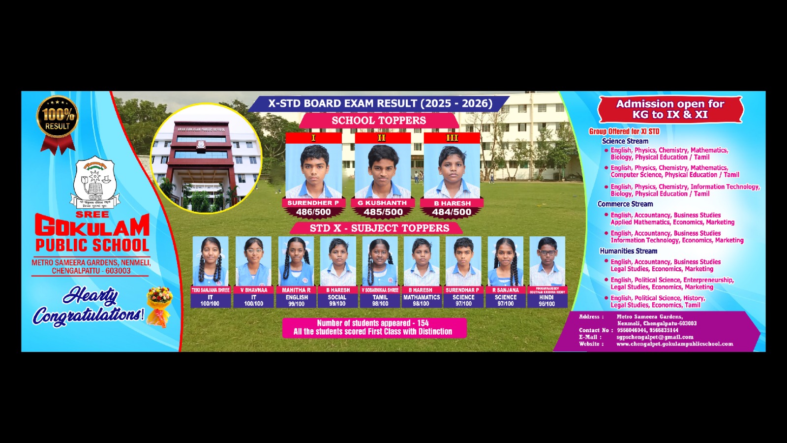 Sree Gokulam Public School is located 3 kms away from Chengalpattu. It caters to students from Pre-KG to XII Std.